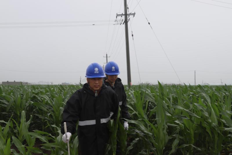 左中公司運維人員在10千伏工業(yè)2線保三南園分03桿進行雨后特巡。(攝影:趙昆陽)