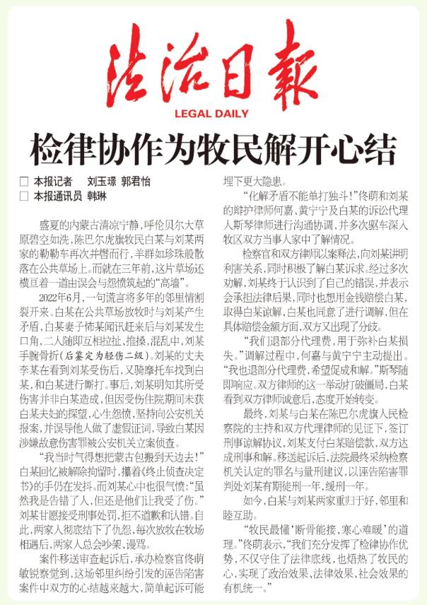 “牧民最懂‘?dāng)喙悄芙?,寒心難暖’的道理?!辟∶缺硎?,“我們充分發(fā)揮了檢律協(xié)作優(yōu)勢,不僅守住了法律底線,也焐熱了牧民的心,實現(xiàn)了政治效果、法律效果、社會效果的有機統(tǒng)一?!保?span style="text-align: justify;">作者 劉玉璟 郭君怡 韓琳)