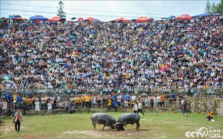 貴州黔東南:瑤寨斗牛慶豐收。