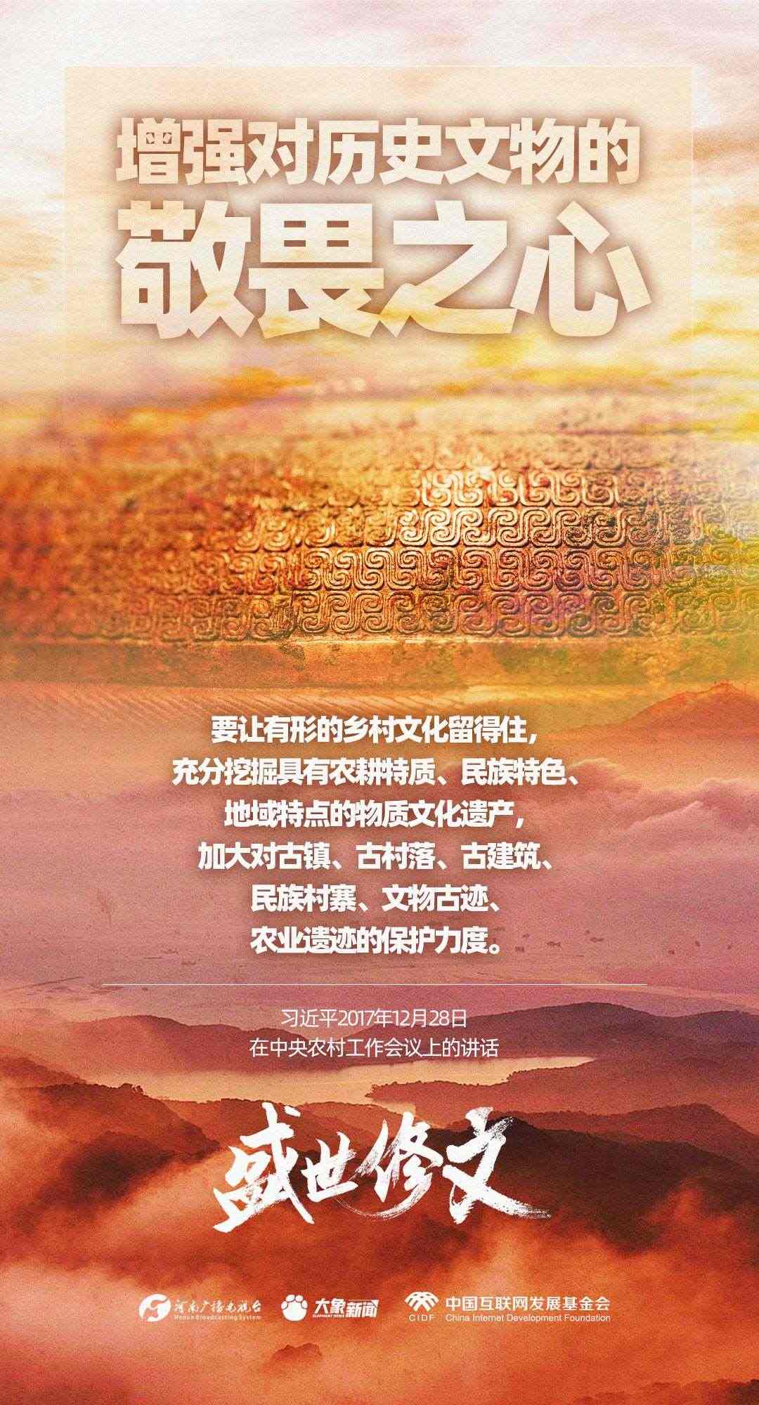 他還要求,各級黨委和政府要增強對歷史文物的敬畏之心,樹立保護文物也是政績的科學理念,統(tǒng)籌好文物保護與經(jīng)濟社會發(fā)展,全面貫徹“保護為主、搶救第一、合理利用、加強管理”的工作方針,切實加大文物保護力度,推進文物合理適度利用,使文物保護成果更多惠及人民群眾。
