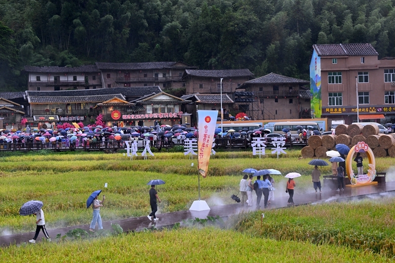 9月23日,游客在福建省2025年中國農(nóng)民豐收節(jié)主會場活動舉辦地莆田市仙游縣菜溪鄉(xiāng)象星村參觀。