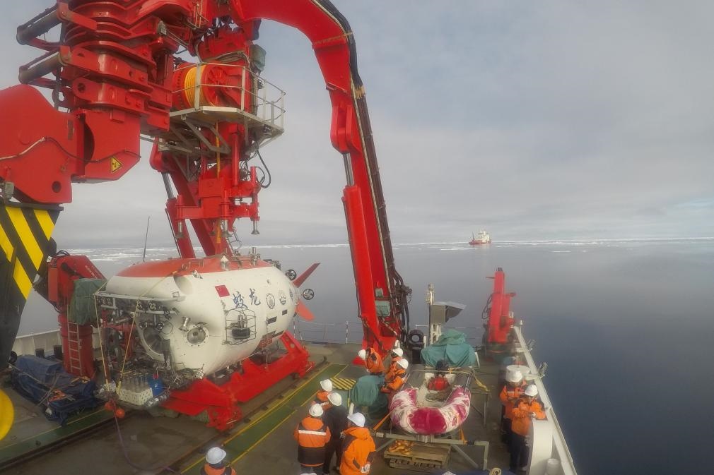 “蛟龍”號(hào)在北冰洋進(jìn)行首次下潛,“雪龍2”號(hào)提供保障支持。新華社記者 劉詩(shī)平 攝