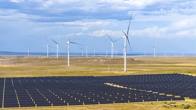 昔日的戈壁荒漠,如今由太陽能光伏板匯聚成“藍(lán)色海洋”,由風(fēng)力發(fā)電機組成“白色森林”,正孕育著無限“風(fēng)光”。