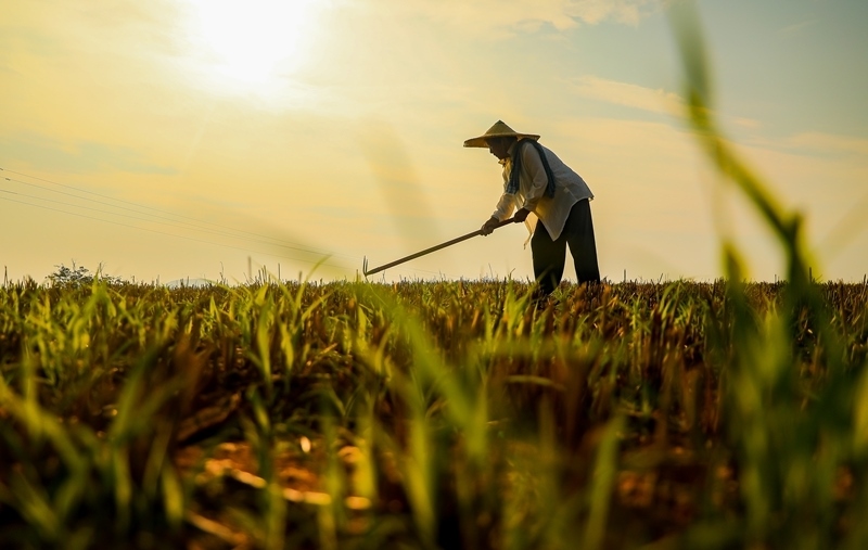 當日是小暑節(jié)氣,農民搶抓農時,忙碌在田間地頭。
