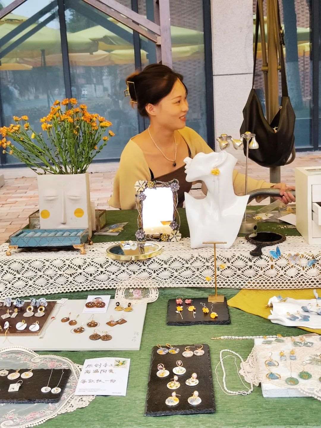 畢業(yè)于湖北美術(shù)學(xué)院陶瓷藝術(shù)專業(yè)的楊帆,2020年放棄本校讀研的機(jī)會(huì),選擇到江西景德鎮(zhèn)創(chuàng)業(yè),主打陶瓷首飾創(chuàng)作?!耙郧澳芟氲降木蜆I(yè)方向是當(dāng)美術(shù)老師或者開(kāi)陶吧,直到在景德鎮(zhèn)看到另一種可能?!睏罘f(shuō),大四那年,景德鎮(zhèn)的陶溪川創(chuàng)意集市邀請(qǐng)她們學(xué)校師生去擺攤,讓她看到了一種新生活——夜幕降臨后,幾百個(gè)年輕人一起出攤把作品賣出去。