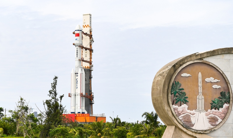 7月12日,天舟九號(hào)貨運(yùn)飛船與長征七號(hào)遙十運(yùn)載火箭組合體垂直轉(zhuǎn)運(yùn)至發(fā)射區(qū)。