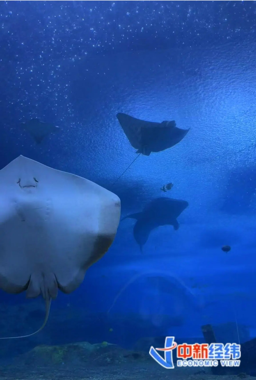 在海底區(qū),小林感到自己仿佛來到了海底世界的IMAX影廳,抬頭就能看到各種海底生物在頭上游過。晚上工作人員還會撤去警戒線,讓他們能與動物更加貼近?!澳莻€時候的體驗(yàn),就是‘藍(lán)調(diào)時刻’,幽靜又神秘,抬頭就能看到鯨鯊巨物從頭頂游過。夜深一些,還能看到有小魚沉底睡覺休息?!毙×终f道。