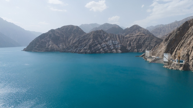 這是8月7日拍攝的阿爾塔什水電站(無人機(jī)照片)。