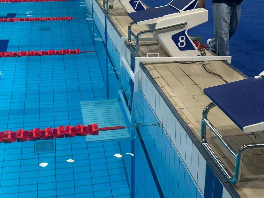 為了幫助救生和自由潛水比賽精準(zhǔn)計(jì)時(shí),成都體育學(xué)院三岔湖校區(qū)游泳館安裝了智能游泳出發(fā)臺(tái)。場(chǎng)館相關(guān)負(fù)責(zé)人王金陽(yáng)介紹說,高級(jí)別賽事對(duì)泳池出發(fā)臺(tái)要求很高,要做到計(jì)時(shí)非常精確,因?yàn)槟呐?.1秒的誤差也可能對(duì)比賽結(jié)果產(chǎn)生影響,為此他們專門在泳池邊裝上了觸控板和芯片等智能計(jì)時(shí)設(shè)備,以確保達(dá)到比賽要求。