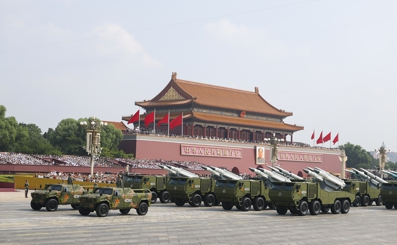 9月3日,紀(jì)念中國(guó)人民抗日戰(zhàn)爭(zhēng)暨世界反法西斯戰(zhàn)爭(zhēng)勝利80周年大會(huì)在北京隆重舉行。這是核導(dǎo)彈第二方隊(duì)接受檢閱。