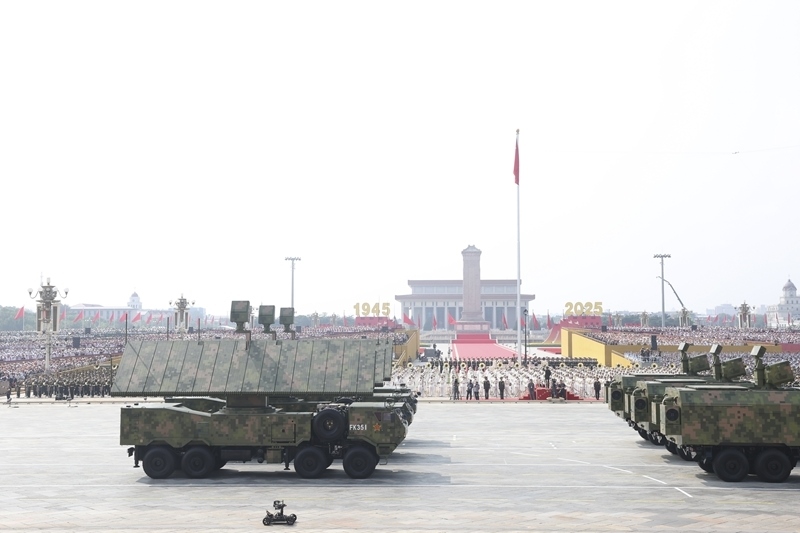 9月3日,紀(jì)念中國(guó)人民抗日戰(zhàn)爭(zhēng)暨世界反法西斯戰(zhàn)爭(zhēng)勝利80周年大會(huì)在北京隆重舉行。這是對(duì)空抗擊方隊(duì)接受檢閱。