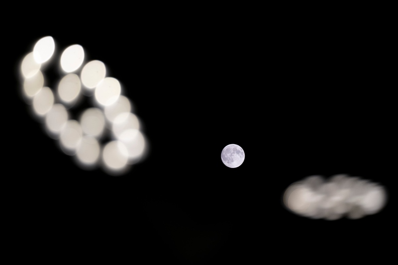 10月6日在黑龍江省哈爾濱市拍攝的中秋滿月(無人機(jī)照片)。