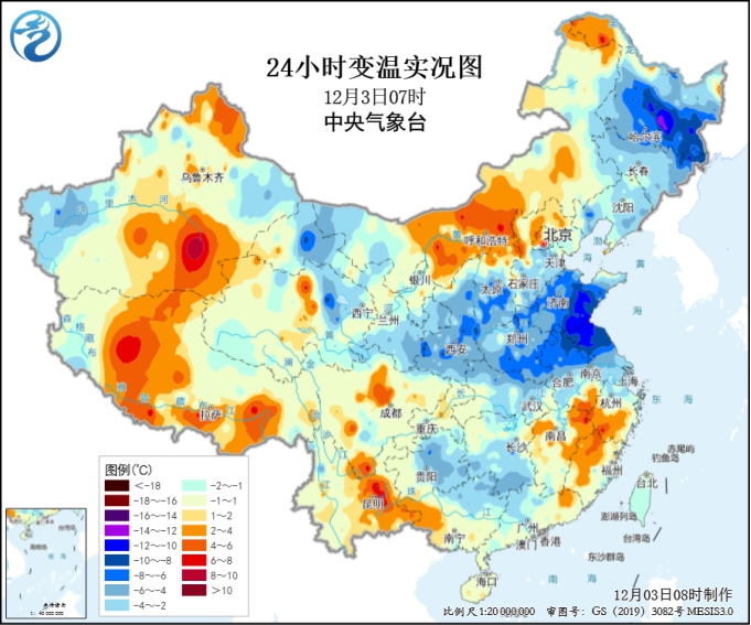 中國(guó)網(wǎng)12月3日訊 據(jù)中央氣象臺(tái)消息,隨著寒潮主體進(jìn)一步東移南下,過(guò)去一天我國(guó)中東部地區(qū)氣溫持續(xù)下跌。最新氣象監(jiān)測(cè)顯示,3日早晨,山東、河南、江蘇、安徽一帶氣溫下降幅度達(dá)到4~8℃,局地降幅超過(guò)10℃,最低氣溫0℃線(xiàn)位于蘇皖北部、河南南部至陜西南部等地。