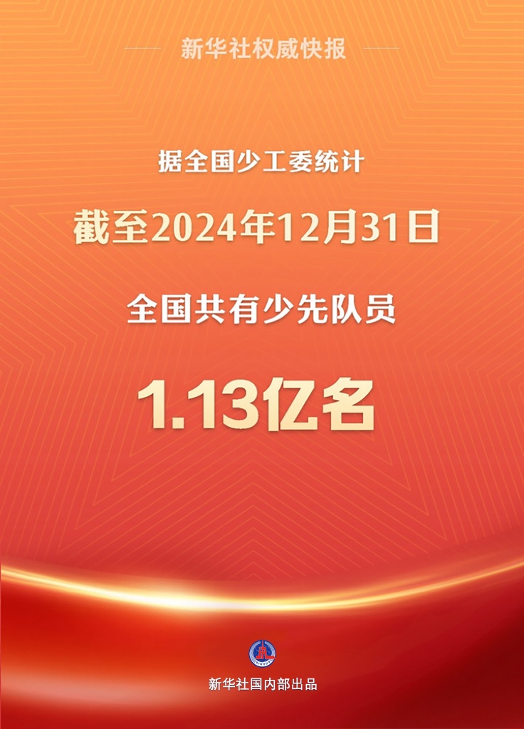 新華社北京5月31日電 記者31日從共青團(tuán)中央獲悉,據(jù)全國少工委統(tǒng)計,截至2024年12月31日,全國共有少先隊員1.13億名,中小學(xué)校少先隊大、中隊輔導(dǎo)員305.4萬名。中小學(xué)校少工委17.6萬個、少先隊大隊17.9萬個、中隊287.4萬個。
