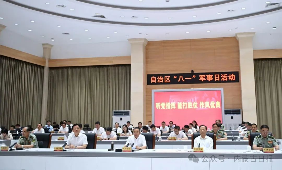 “八一”建軍節(jié)來臨之際,7月21日,自治區(qū)黨委書記、內(nèi)蒙古軍區(qū)黨委第一書記孫紹騁,自治區(qū)政協(xié)主席張延昆等自治區(qū)省軍級領(lǐng)導(dǎo)同志集體參加國防動員能力建設(shè)成果展示活動暨“八一”軍事日活動。孫紹騁代表自治區(qū)黨委和政府,向駐區(qū)廣大解放軍指戰(zhàn)員、武警部隊官兵、軍隊文職人員以及民兵預(yù)備役人員、退役軍人致以節(jié)日祝賀,向廣大應(yīng)急救援人員致以誠摯問候。