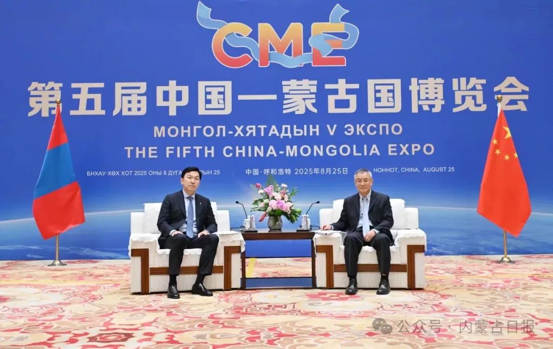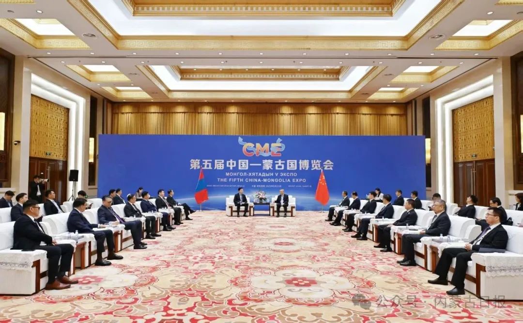 8月24日,全國人大常委會副委員長、民進中央主席蔡達峰在呼和浩特會見前來出席第五屆中國—蒙古國博覽會的蒙古國第一副總理兼經濟發(fā)展部部長烏其爾勒一行。自治區(qū)黨委書記孫紹騁參加會見。草原云·內蒙古新聞網(wǎng)記者 馬建兵 攝