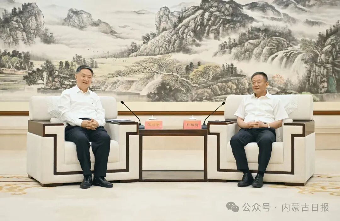 9月1日,自治區(qū)黨委書記孫紹騁在呼和浩特會(huì)見中國華能集團(tuán)有限公司黨組書記、董事長(zhǎng)溫樞剛。草原云·內(nèi)蒙古新聞網(wǎng)記者 馬建兵 攝