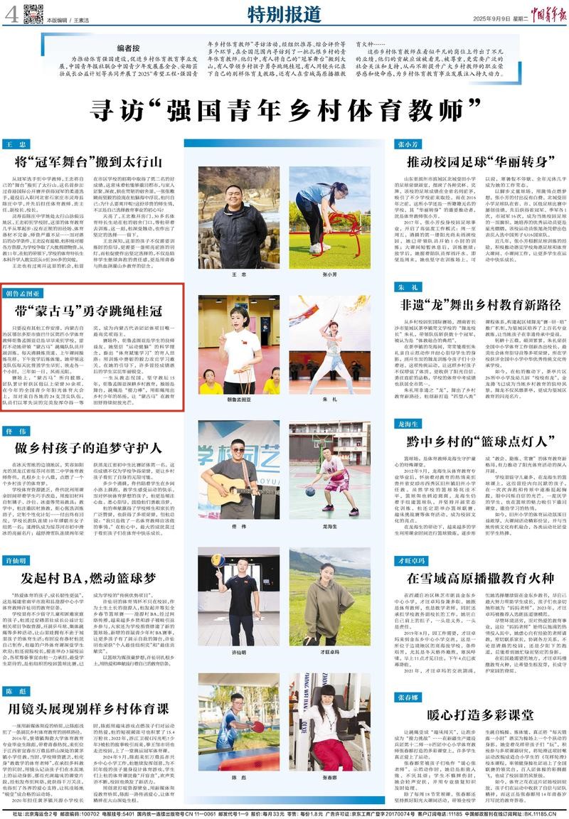 2025年9月9日,《中國青年報》第4版刊發(fā)題為《朝魯孟圖亞帶“蒙古馬”勇奪跳繩桂冠》的文章,報道了內(nèi)蒙古自治區(qū)鄂爾多斯市康巴什區(qū)第四小學(xué)體育教師朝魯孟圖亞深耕鄉(xiāng)村教育,用細(xì)繩甩出鄉(xiāng)村少年的昂揚(yáng),讓“蒙古馬”在教育田野持續(xù)綻放光芒。