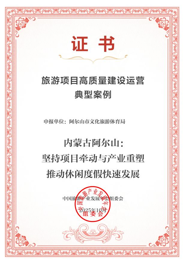 阿爾山市“堅持項目牽動與產(chǎn)業(yè)重塑推動休閑度假快速發(fā)展”案例成功入選2025旅游項目高質量建設運營典型案例。